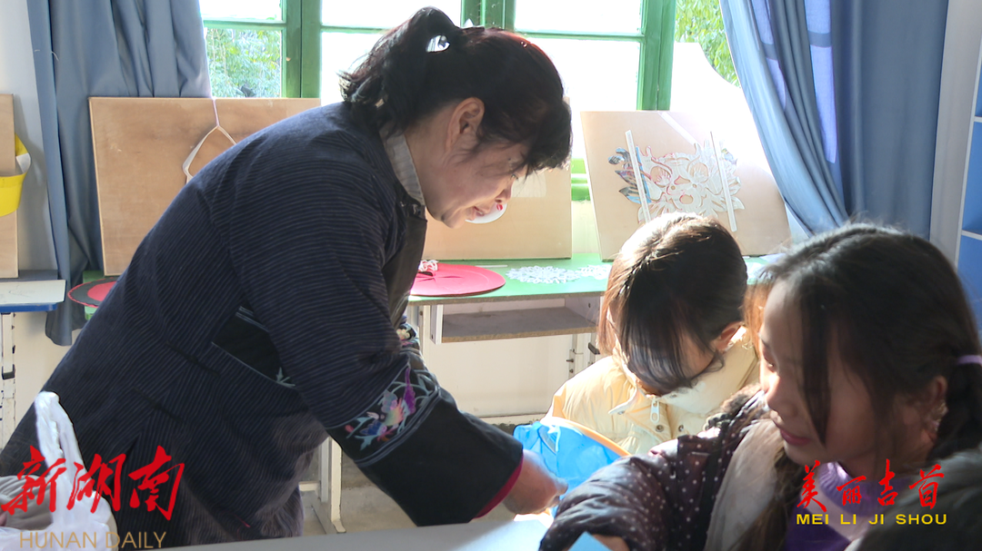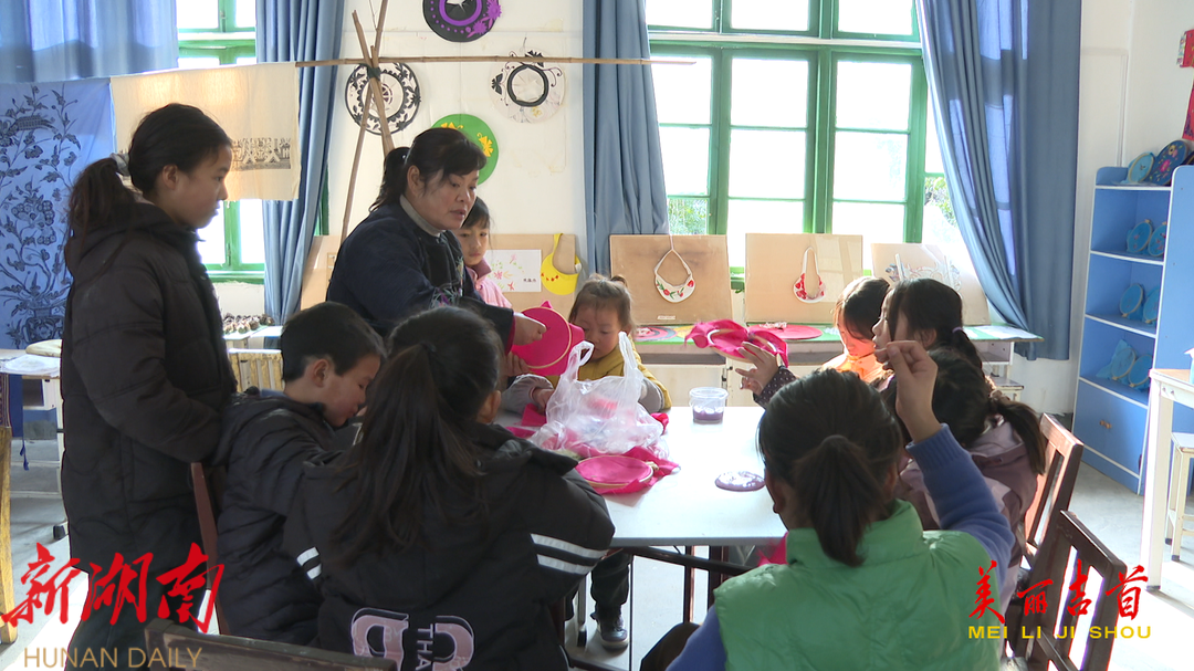 在关侯小学的儿童假期学习乐园内,“吉首苗绣”市级代表性传承人吴子花正悉心指导孩子们学习苗绣。她耐心地讲解着苗绣的手法和技巧,孩子们手持绣针,认真专注地在绣布上穿梭。从简单的图案到较为复杂的造型,孩子们沉浸在苗绣的世界里,学得兴致勃勃。此外,村里还精心打造了阅读室,配备了大量适合儿童阅读的书籍,为孩子们提供了丰富的精神食粮。吴子花感慨地说:“教小朋友绣花剪纸、做手工,看到他们这么感兴趣,我心里也特别高兴。”
