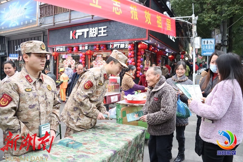 活动现场,县人武部工作人员以赶集日为契机,抓住春节前夕大学生返乡高峰期,组织征兵宣传员在县城步行街通过悬挂横幅、发放征兵宣传手册、现场咨询解答等多种方式,向市民和适龄青年普及征兵政策,详细解读应征入伍的条件、报名流程以及最新征兵政策。