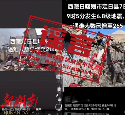 真相: 2025年1月7日9时5分,西藏日喀则市定日县发生6.8级地震,震源深度10公里。截至1月9日上午6时,官方正式公布此次地震已造成房屋倒塌3612户,遇难126人。该数据是目前唯一可信的遇难人数信息。 然而,近日网络上却出现一些别有用心之人,故意编造并传播虚假信息,声称地震遇难人数为265人,这与实际情况严重不符,属于毫无根据的谣言。