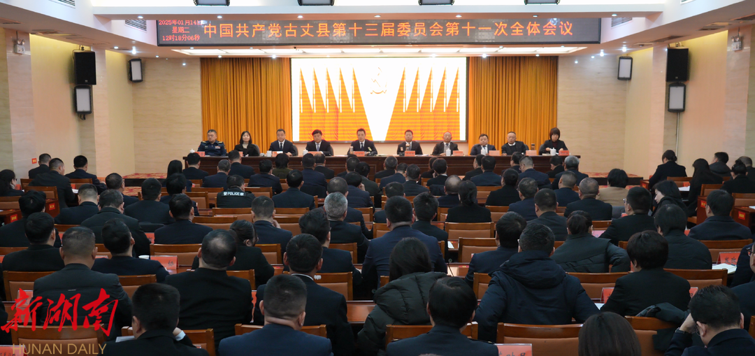 新湖南客户端1月14日讯(记者 郑湘)1 月 14 日,中国共产党古丈县第十三届委员会第十一次全体会议暨县委经济工作会议召开。全会深入学习贯彻党的二十大和二十届二中、三中全会及中央经济工作会议精神,认真落实省委十二届八次全会暨省委经济工作会议、州委十二届九次全会暨州委经济工作会议精神,总结 2024 年全县经济工作,部署 2025 年经济工作。