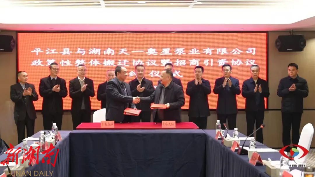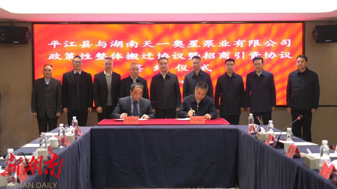 1月9日,平江县与湖南天一奥星泵业有限公司政策性