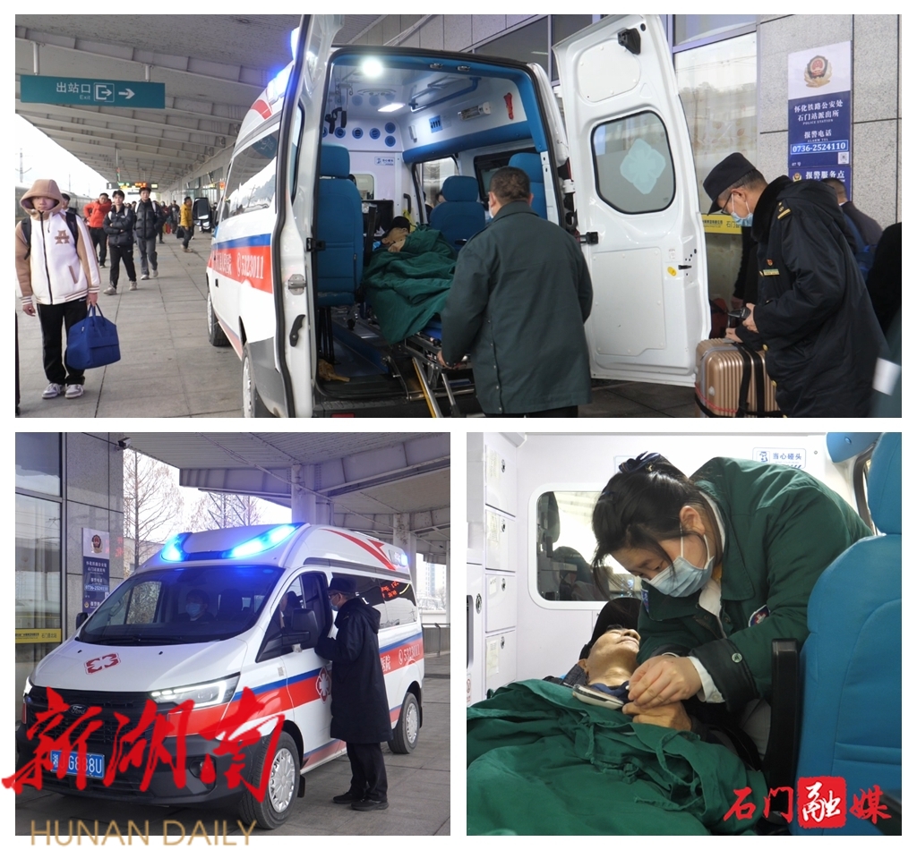 接到消息后,石门县北站立即启动应急预案,开启绿色通道,安排专人负责对接,并联系石门县人民医院120急救中心,确保患者下车后能够第一时间得到救治。