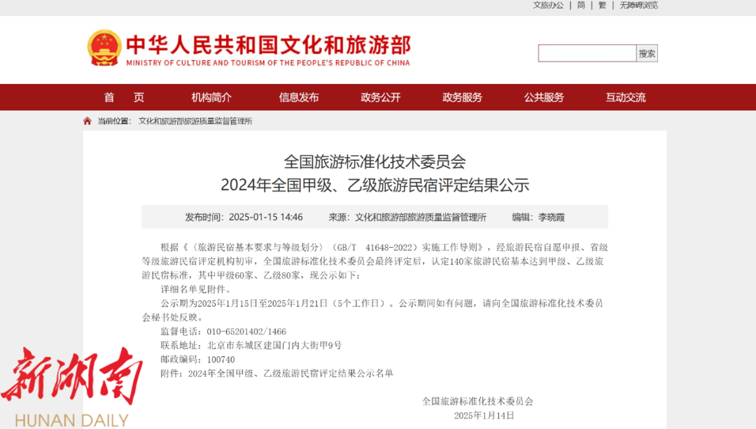 近日,文化和旅游部公示了2024年全国甲级旅游民宿名单 其中,云起民宿被认定为 全国甲级旅游民宿。