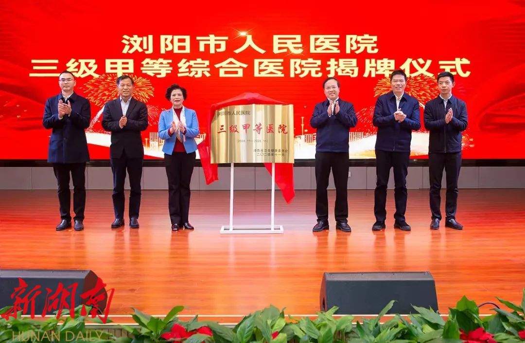 1月15日,浏阳市人民医院举行三级甲等综合医院揭牌仪式,标志着浏阳医疗卫生事业迈上新台阶。省卫生健康委二级巡视员曾清,长沙市委常委、浏阳市委书记肖正波出席并揭牌。
