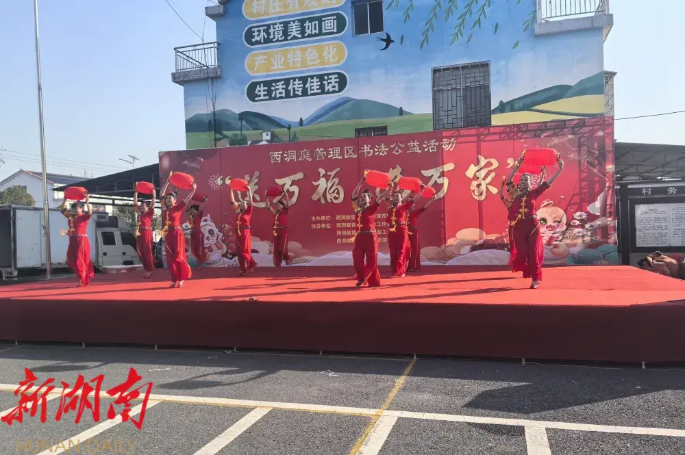 “蛇年顺景接平安,新春吉祥迎富贵。”除了书法活动,现场还安排了精彩纷呈的文艺演出。歌曲、舞蹈、太极等节目轮番上演,吸引了众多村民驻足观看