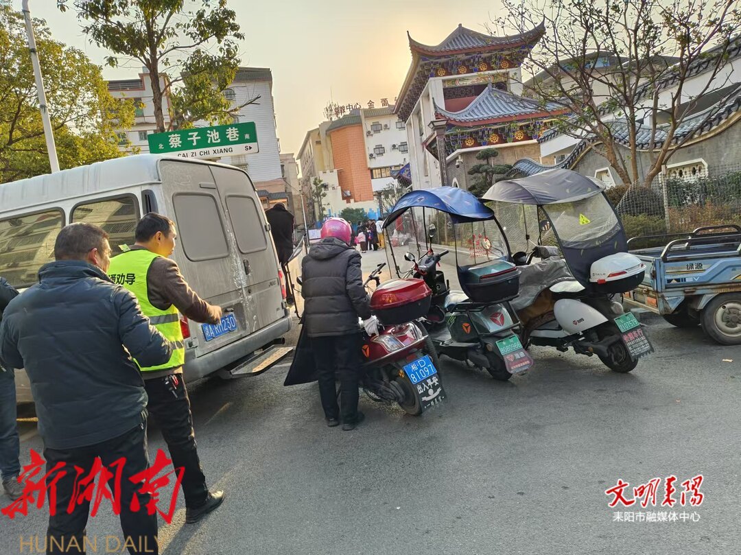 1月16日,蔡子池街道在辖区主要路段开展交通秩序维护行动。