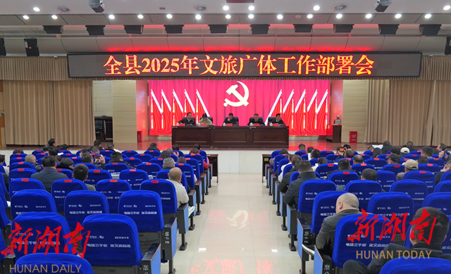 湖南日报·新湖南客户端1月17日讯(通讯员刘俊涛)1月15日,新化县召开2025年文旅广体工作部署会。副县长陈元怀,省地质院自然资源调查所技术负责人戴娟出席,县直单位相关分管负责人,“村武”导演执行组、县文旅广体局相关负责同志、乡镇分管负责人、相关协会代表参加。