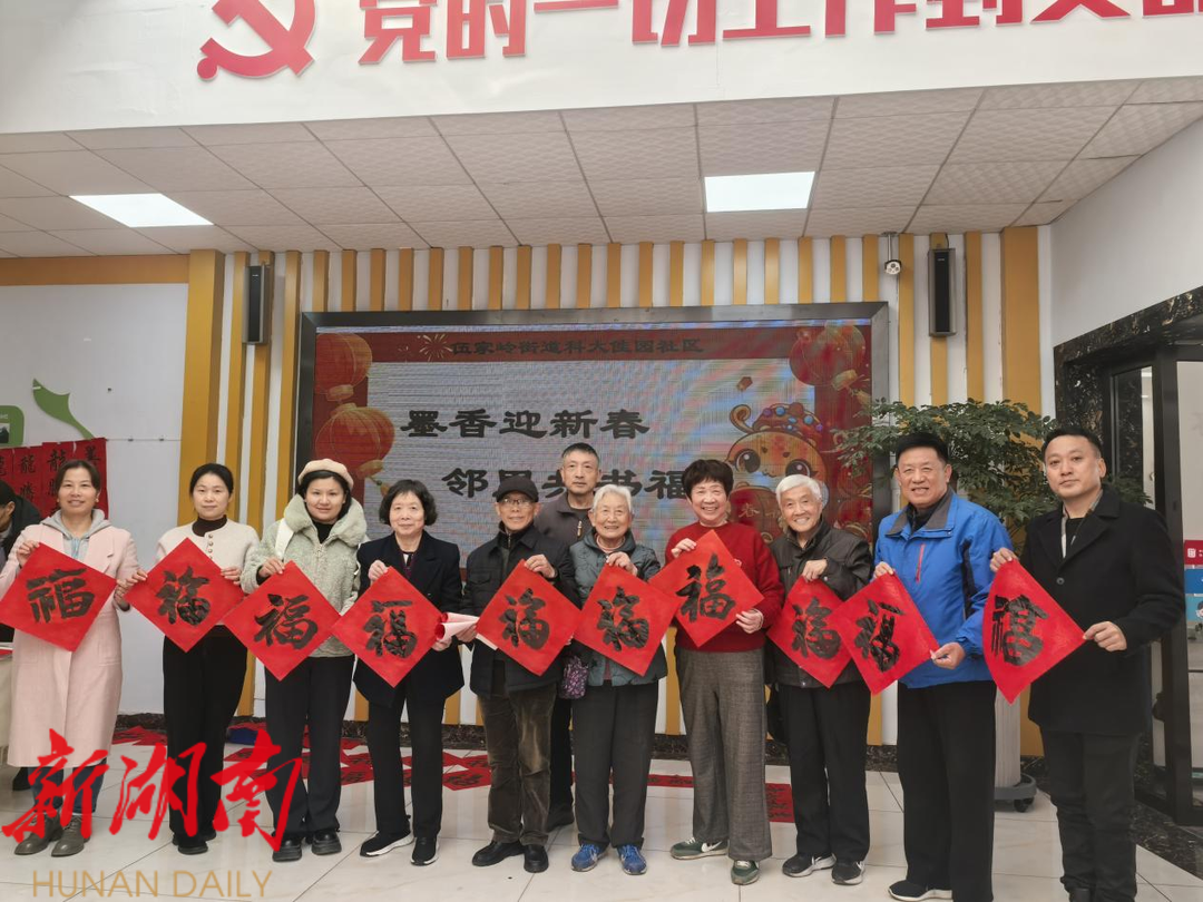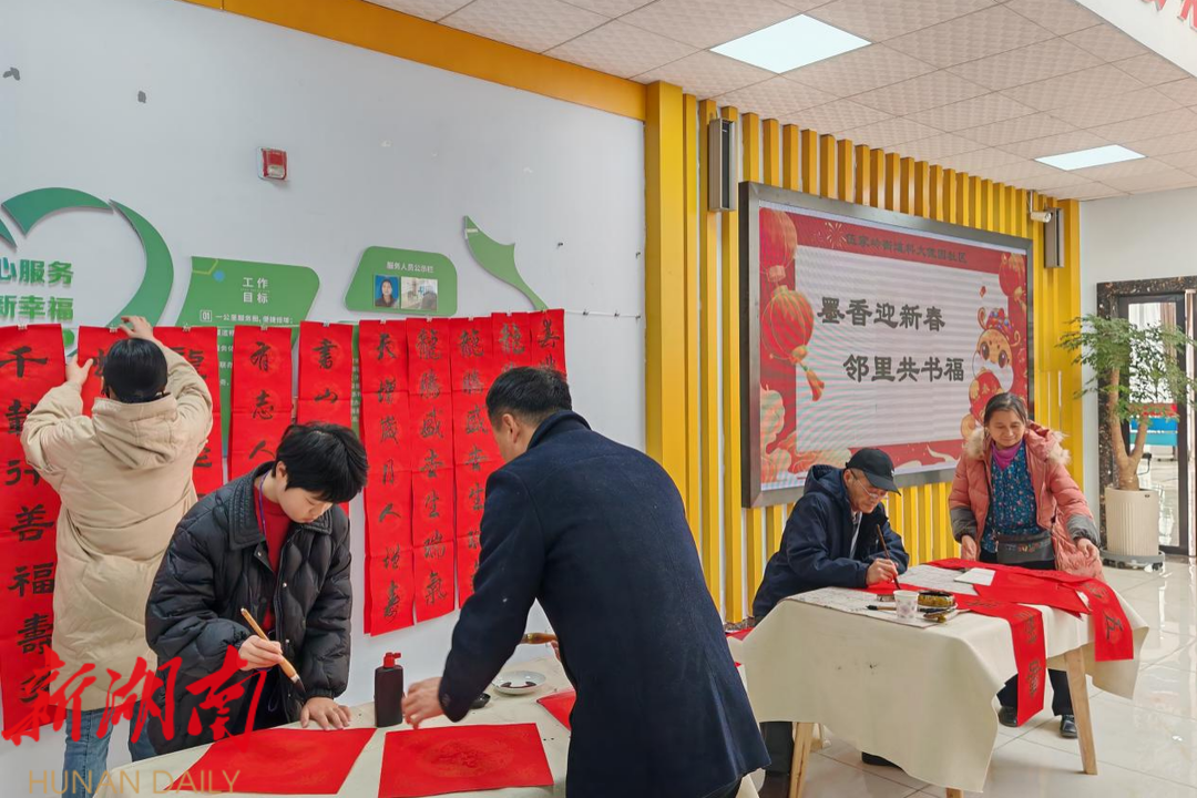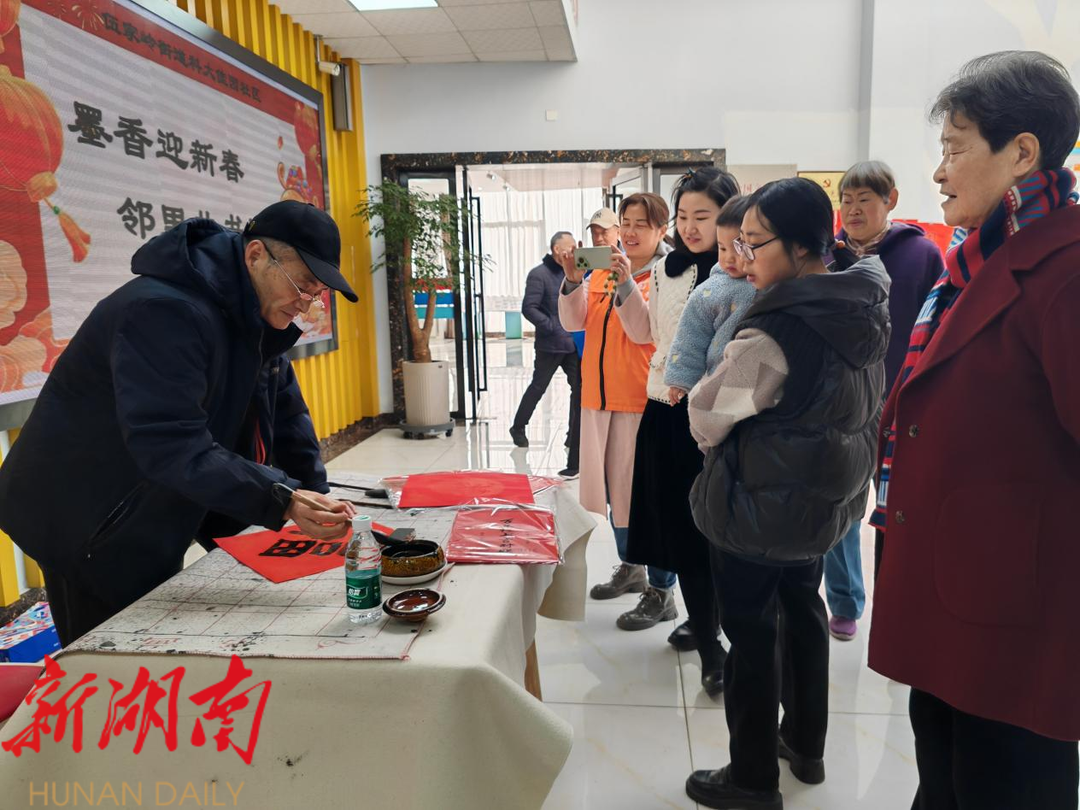 湖南日报·新湖南客户端1月17日讯(通讯员 彭玉立)1月17日上午,开福区伍家岭街道科大佳园社区热闹非凡,一场别开生面的写春联活动在此温馨举行。此次“墨香迎新春 邻里共书福”写春联主题活动由科大佳园社区党委携手社区“心悦开福”心理健康服务站、“童学号”践行基地、侨胞之家及慈善超市等单位共同举办,旨在以扎实推进“一月一片一课一实践”为抓手,弘扬中华传统文化,搭建居民交流平台,让大家在墨香中感受浓浓的年味。
