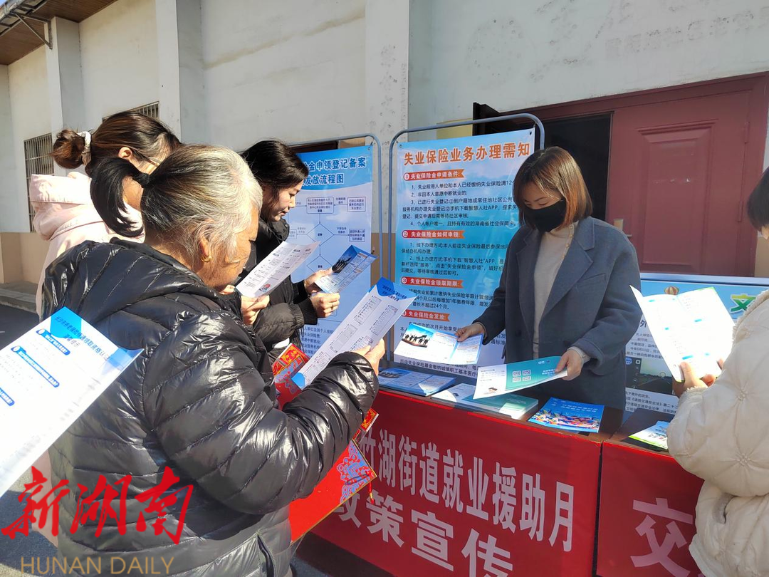 湖南日报·新湖南客户端1月17日讯(通讯员 谢雅利)今天下午,长沙市开福区青竹湖街道在霞凝港社区广场举行开福区青竹湖街道就业援助月政策宣传。为辖区居民,特别是失业及就业困难人员宣传就业创业政策。