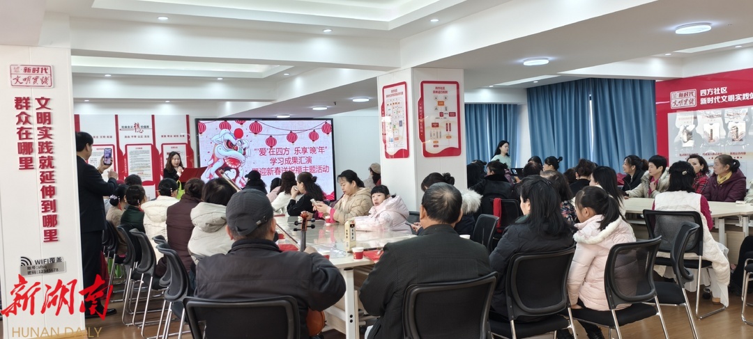 湖南日报·新湖南客户端1月17日讯(通讯员 刘璐)1月17日,开福区四方坪街道四方社区党群服务中心四楼喜气洋洋、热闹非凡。四方社区联合长沙农商行开福支行举办的以“‘爱’在四方 乐享‘晚’年”为主题的学习成果汇演暨迎新春送祝福活动在此举行。