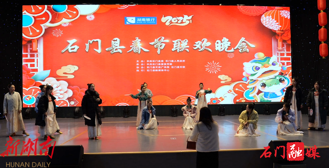 湖南日报·新湖南客户端1月17日讯(记者 刘越 文杰 姚童童 徐攀 覃瑾杰)乘龙兴盛世,迎蛇谱新篇。2025年石门县春节联欢晚会将于1月23日晚上7点(农历腊月二十四)在县融媒体中心演播大厅举行。随着蛇年春节的临近,石门县春节联欢晚会的彩排工作正在火热进行中。