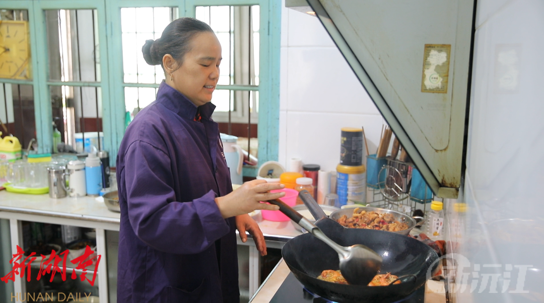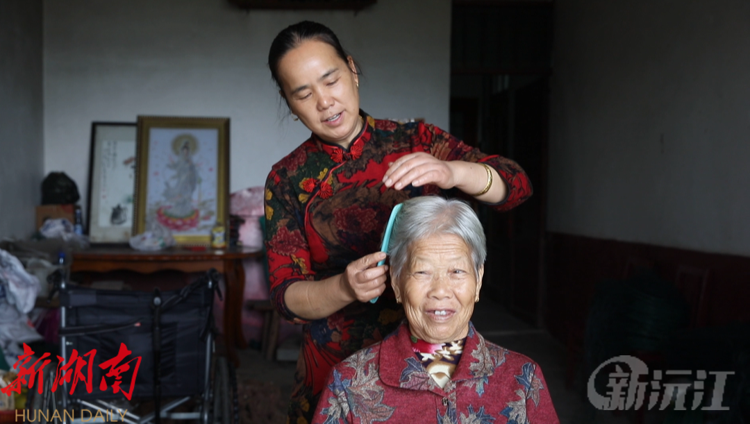 临近中午,曹卫芬如往常一样在厨房忙碌着,为一大家子人做午饭,炖鸡、牛肉、基围虾等丰富的菜肴既营养又美味。吃完饭后,曹卫芬又为婆婆梳头,与公公聊天,希望通过陪伴和日常中细微的照顾让公公婆婆的生活过得更舒心,整个家中都充满了和睦的氛围。