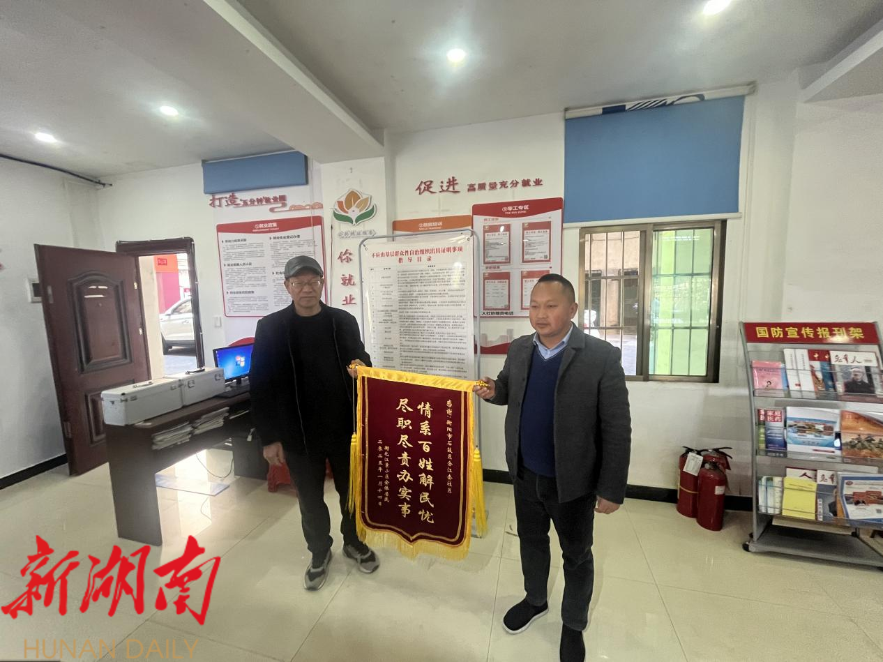 1月16日,合江街道合江套社区迎来了一份沉甸甸的礼物——一面印有 “情系百姓解民忧,尽职尽责办实事” 的致谢锦旗。这份特殊的礼物,由家住石鼓区衡化江景小区5栋的周先生代表小区全体居民亲手送到社区负责人手中。周先生激动地说道:“感谢社区及时修复了我们小区门口的路,现在路面既平整又美观,真的是太好了!”
