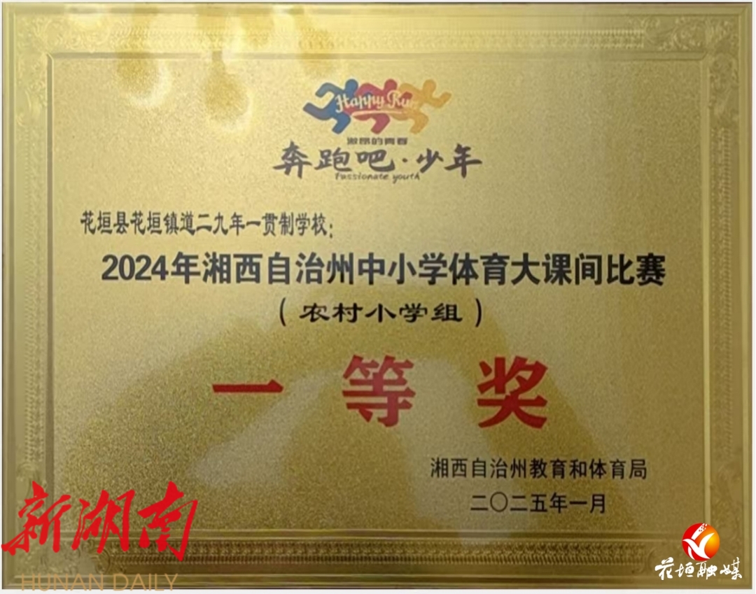 1月17日下午,湘西州召开2024年青少年体育工作暨“奔跑吧˙少年”全州中小学体育大课间比赛总结会议。会议通报了“奔跑吧˙少年”湘西州体育大课间比赛结果。其中,花垣县道二九年一贯制学校荣获农村小学组一等奖。