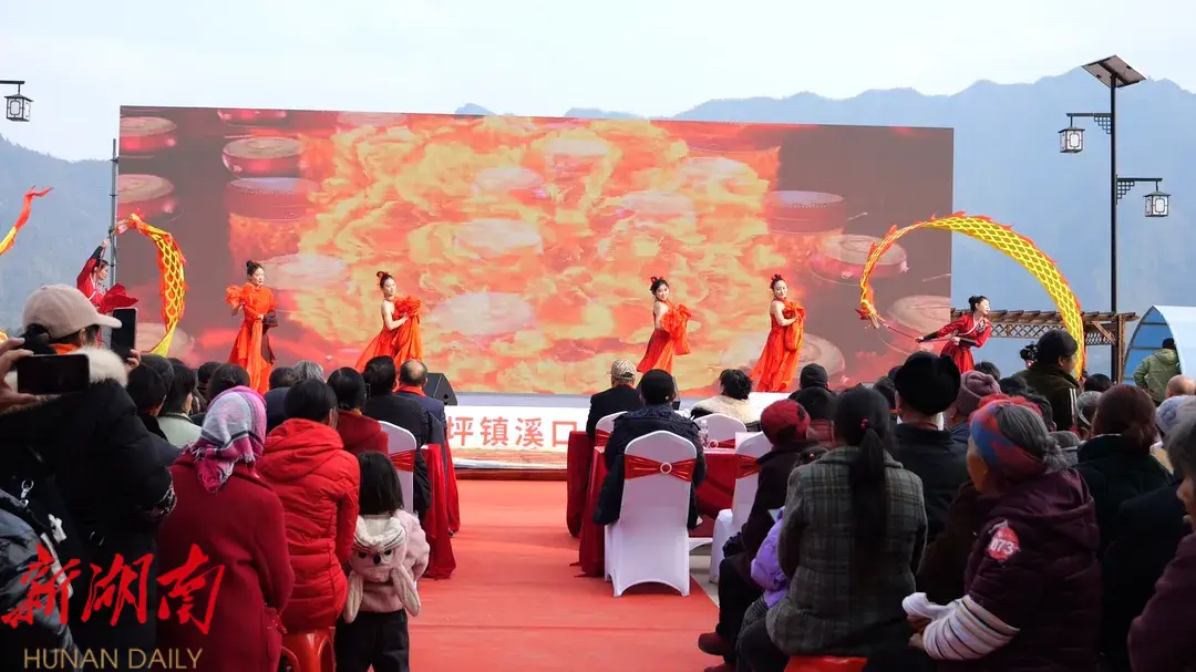 湖南日报·新湖南客户端1月19日讯(记者 王维阳)1月18日,龙潭坪镇溪口村的娄澧茶厂挤满了父老乡亲,大家神采飞扬,沉浸在迎新春、看演出的喜庆氛围之中。