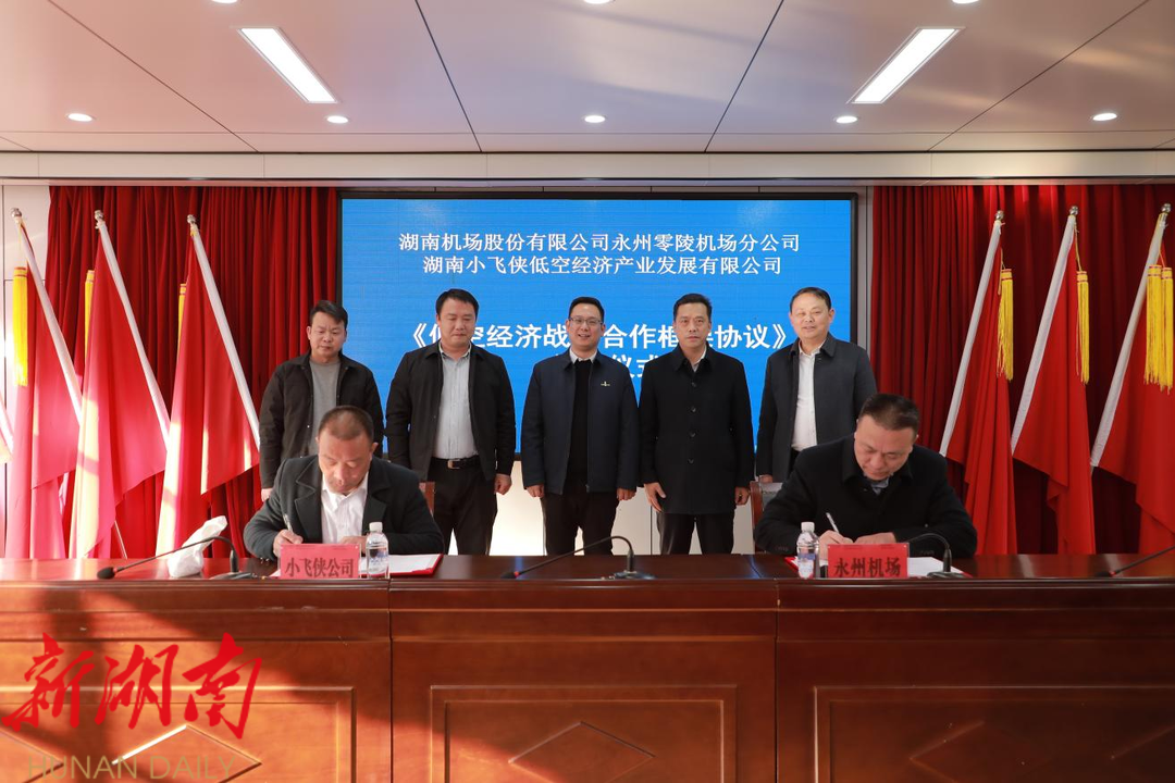在与会人员的见证下,永州机场与湖南小飞侠低空经济产业发展有限公司共同签署了战略合作协议,正式拉开了永州低空经济合作交流、携手共赢的序幕。下一步,双方将秉承资源共享、优势互补、互利共赢的原则,建立高效沟通和合作推进机制,围绕建设永州低空经济中心这一目标努力探索、深度挖掘,推动合作协议落实,携手打造具有永州特色的可持续发展低空经济产业新业态,为永州市经济的高质量发展贡献低空经济板块卓越的力量。