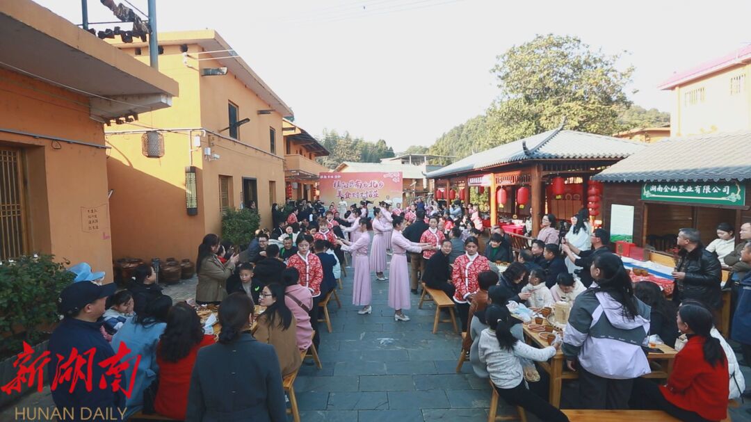 台下,美食展示区一字排开,饺粑、糍粑、油噍、蛋散、麻糯噍、芝麻花根、麻圆、绦环等桂阳传统名小吃蕴含着家的味道,让人垂涎欲滴。一道道美食,不仅是味蕾的享受,也是文化的载体,无不蕴含着一方水土的独特基因和生活智慧。“闻香而来”的游客们品小吃、寻年味,一饱口福,乐享“寻味之旅”。