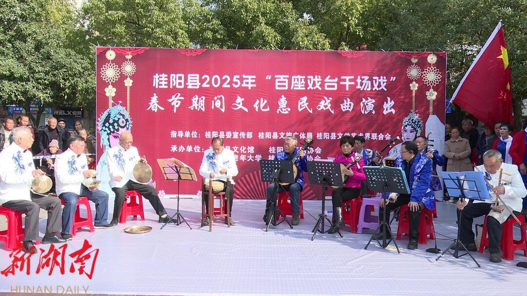 新桂阳1月20日讯(记者 刘克坚) 为丰富居民的精神文化生活,让大家在新春佳节感受传统艺术的独特魅力。1月18日,我县举办2025年“百座戏台千场戏”春节期间文化惠民戏曲演出,此次演出由县文化馆、县京剧协会、县老年大学、县礼仪协会承办。