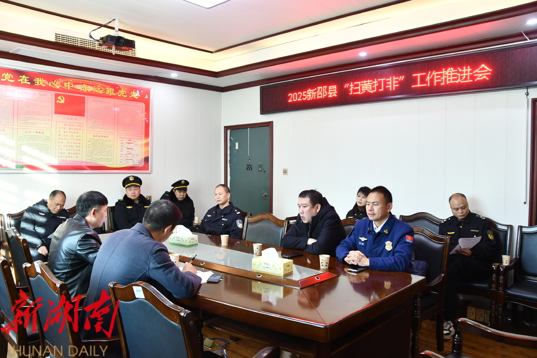 新新邵客户端1月17日讯 为进一步规范节日期间全县文化市场经营管理秩序,营造良好的社会文化氛围,1月16日,县委宣传部、县文旅广体局、县公安局、县交通局、县文化市场综合执法大队、消防救援大队召开2025新邵县“扫黄打非”工作推进会,会议对督导检查工作提出明确要求。