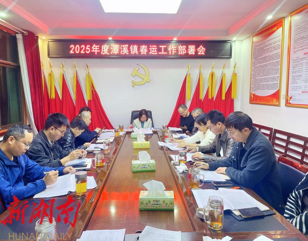 新新邵客户端1月18日讯 1月16日,为满足群众出行需求,护航群众出行安全,保障群众欢度春节,潭溪镇党委政府于召开了2025年度潭溪镇春运工作部署会。