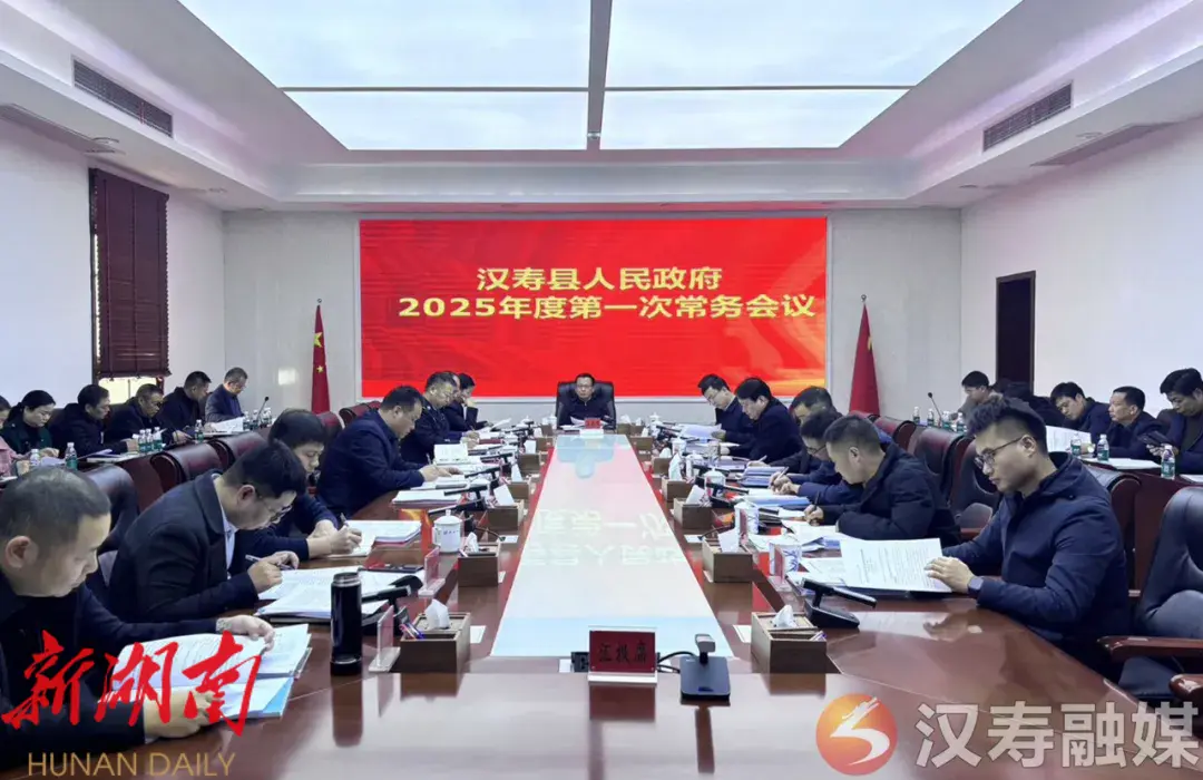1月17日,汉寿县委副书记、县人民政府县长王时雨主持召开县人民政府2025年度第一次常务会议,传达学习相关重要讲话、会议精神,听取工作情况汇报,研究部署全县贯彻落实措施。