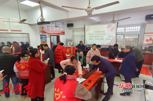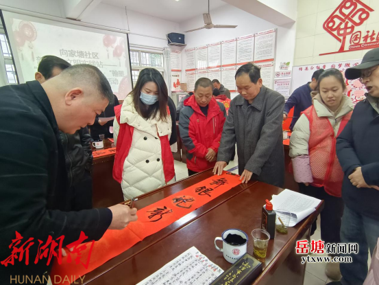 岳塘新闻网1月20日讯 (通讯员:潘亚蒂)新春佳节来临之际,为弘扬中华优秀传统文化,营造浓厚的节日氛围,增进邻里情谊,近日,岳塘区霞城街道向家塘社区新时代文明实践站联合湘潭市美术家协会进社区开展“我爱湘潭我的家”“翰墨飘香·迎春送福”活动,特邀书法专家为辖区居民写春联和福字。