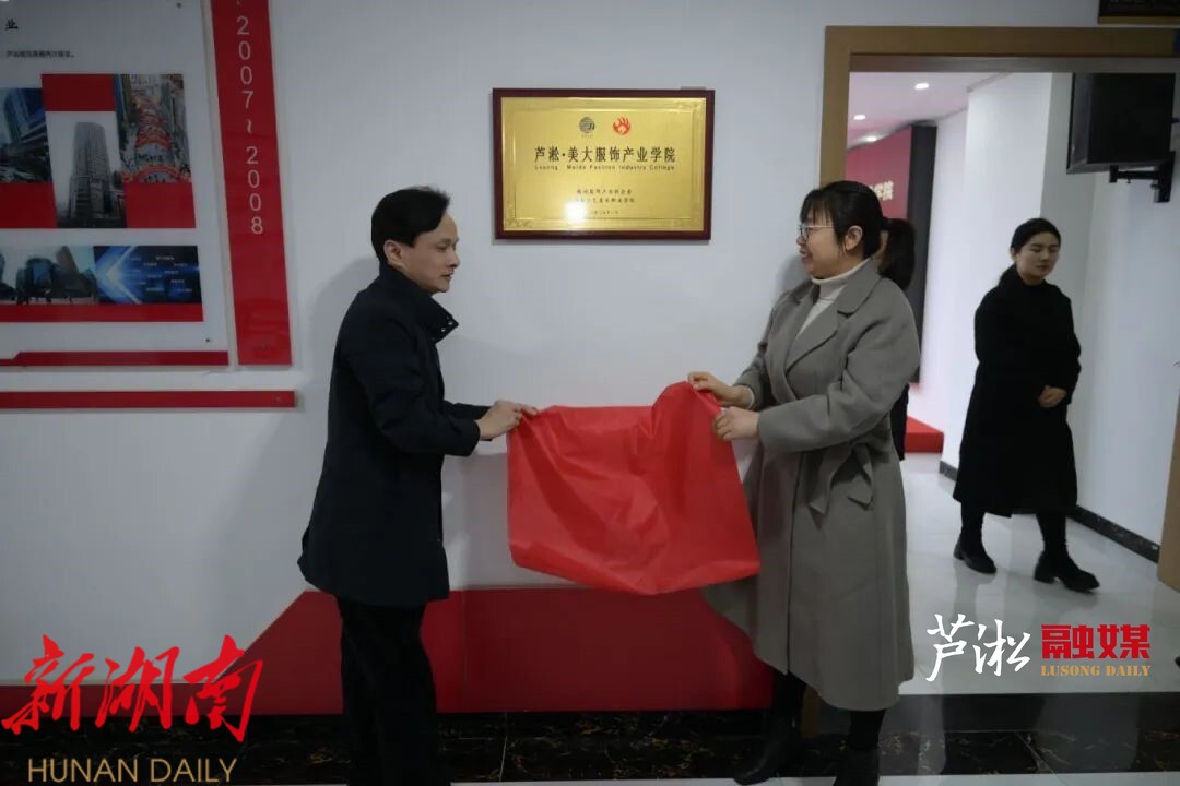 2025年1月15日上午,由株洲服饰产业联合会、湖南工艺美术职业学院共建的芦淞·美大服饰产业学院揭牌仪式在株洲市芦淞区举行。湖南工艺美术职业学院校长夏能权,芦淞区委常委、组织部部长李石德为芦淞·美大服饰产业学院揭牌。