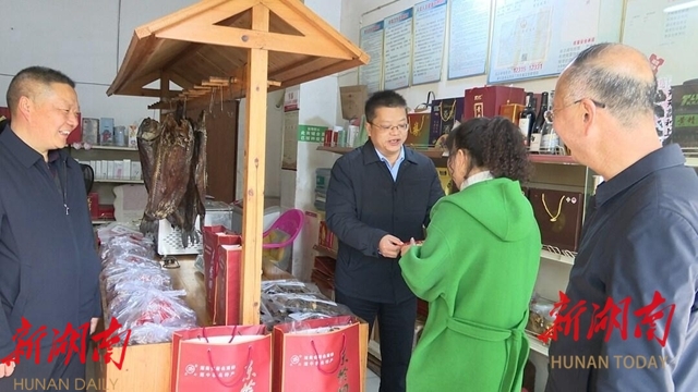在上渡街道东岭田鱼门店,李峰仔细询问省级劳模王永红的经营状况与发展需求,对她展现出的劳模精神予以充分肯定,叮嘱王永红继续弘扬劳模精神,创新经营理念和销售模式,不断提升产品销量和品牌价值,进一步做大做强东岭田鱼产业。