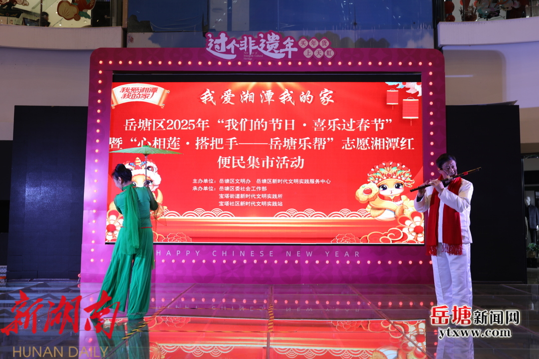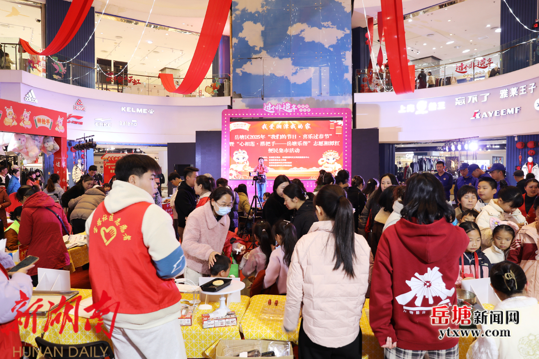 1月20日,“我爱湘潭我的家”岳塘区2025年“我们的节日·喜乐过春节”暨“心相莲·搭把手——岳塘乐帮”志愿湘潭红便民集市活动在岳塘区天虹商场举行。