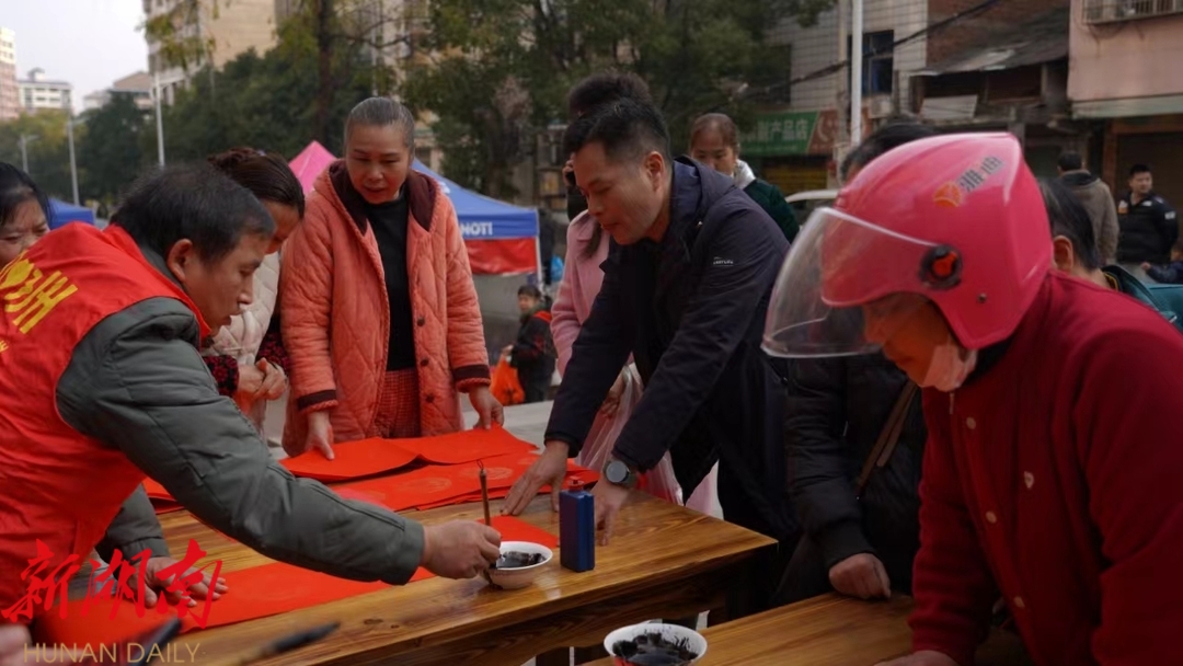 在福寿亭社区万寿松小区、神仙岭社区仙域华庭小区、茆江桥社区潇水东苑等地,来自零陵书法家协会的会员和广大书法爱好者们齐聚一堂,现场挥毫泼墨,为市民送上饱含祝福的春联与福字。 前来领取春联的市民们脸上洋溢着喜悦的笑容,大家纷纷表示,这些手写的春联比市场上购买的更有温度、更具年味,承载着深厚的文化底蕴和真挚的祝福。