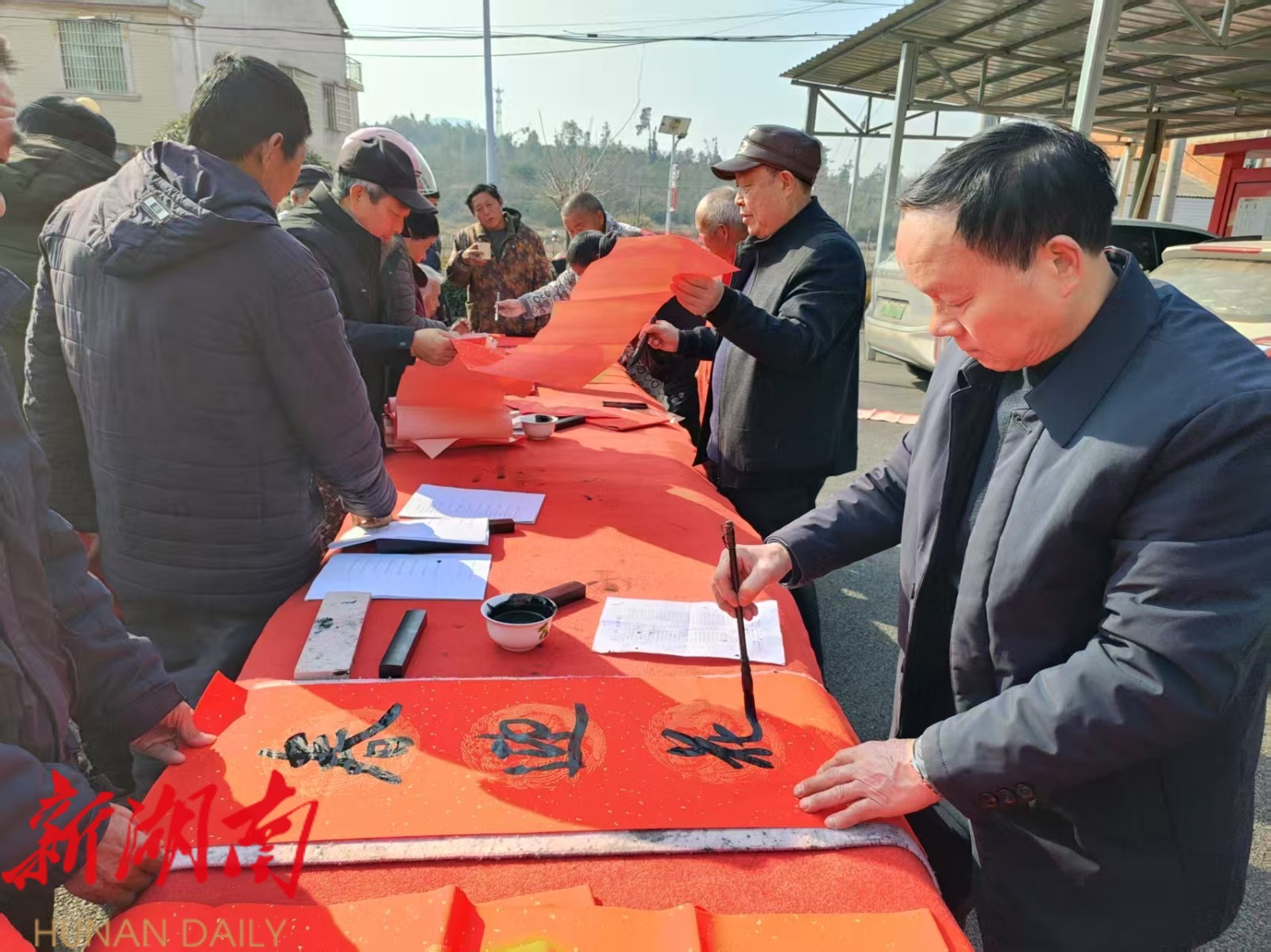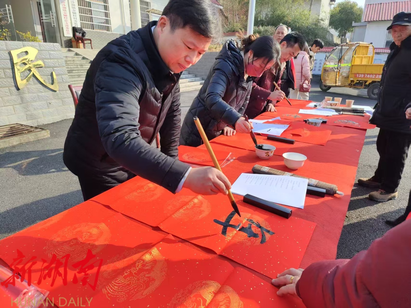 湖南日报·新湖南客户端1月21日讯(通讯员 吴卫)春节的脚步日益临近,为弘扬中华优秀传统文化,营造欢乐祥和的节日氛围,1月19日,湘阴县书法协会联合湘阴县总工会走进洋沙湖镇金辅村开展送春联下乡活动,为村民们送上一份独特的“年货”,也为金辅村的清廉村居建设增添了一抹亮丽色彩。