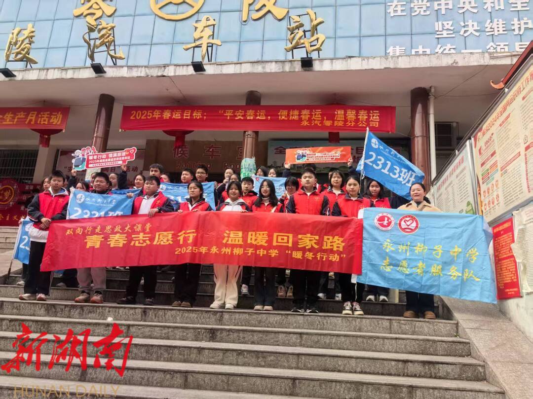 湖南日报·新湖南客户端1月21日讯(通讯员 陈斯理)为积极响应春运服务需求,进一步发挥青年志愿者在保障人民群众安全健康、便捷舒心出行中的积极作用, 1月18日,永州市柳子中学团委组织青年志愿者 开展了以“青春志愿行,温暖回家路 ”为主题的志愿服务活动。