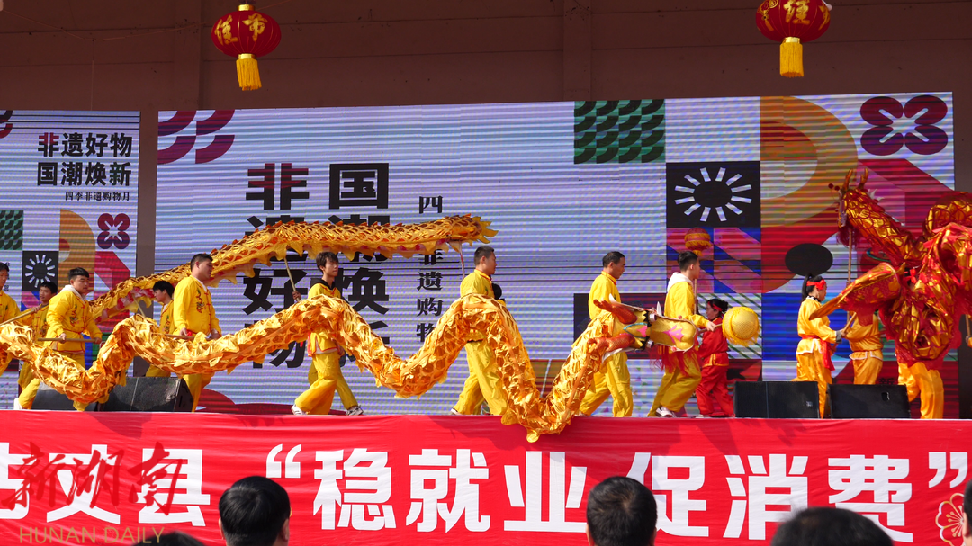 此外,年货节现场还举办了丰富多彩的文艺表演和互动活动。一曲曲欢快的苗族民歌、一段段精彩的非遗舞蹈,让市民在购物的同时,也能享受到文化大餐。