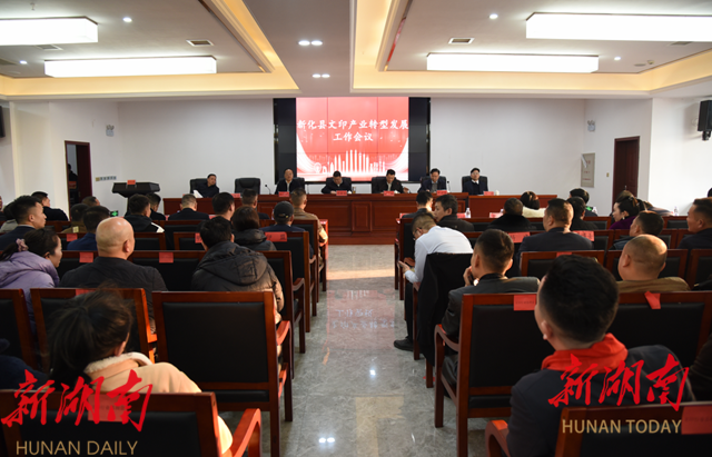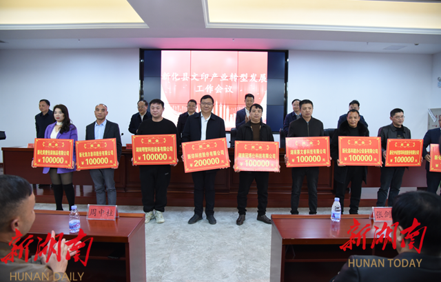 湖南日报·新湖南客户端1月21日讯(通讯员 邹畅宁 刘文 曾湘涛)1月20日,在第十届新化文印产业博览会开幕后,新化县召开文印产业转型发展工作会议,进一步锚定千亿目标,书写新化文印崭新篇章。娄底市人大常委会副主任、新化县委书记李铁雄出席并讲话,新化县委副书记、县长彭韬主持会议。县领导杨韶红、邹谊翔、邹喆、陈元怀出席。