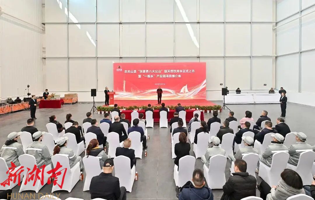 湖南日报·新湖南客户端 1月22日讯(记者 肖君 瞿桂林 张鸽)1月21日,农夫山泉“张家界八大公山”版天然饮用水正式上市暨“一瓶水”产业链项目推介活动举行。市委副书记、市长王洪斌出席活动并宣布上市。市政府秘书长向志刚,县领导曹飞、梁高武、黎涛、钟德华、汪业锋、唐妙玲参加活动。