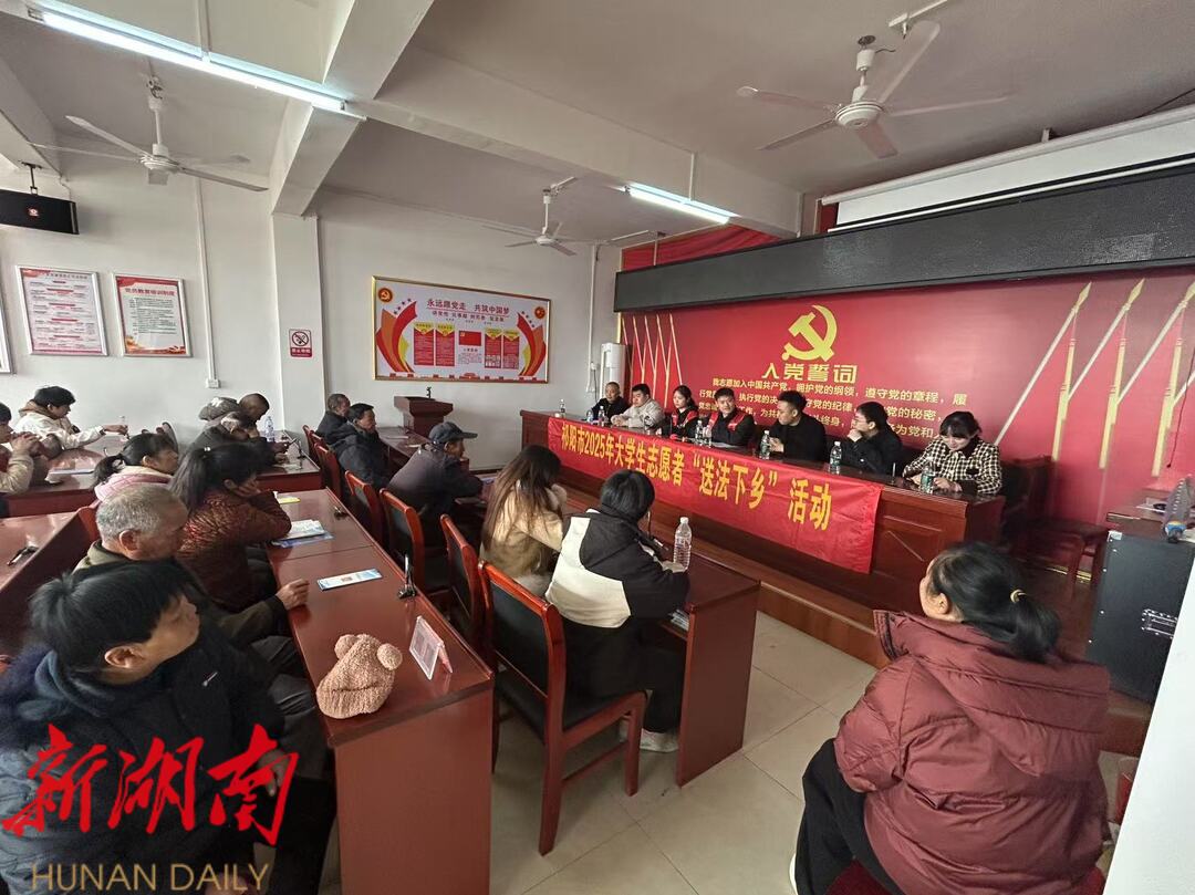 湖南日报·新湖南客户端1月22日讯(通讯员 于情) 1月21日,祁阳市肖家镇政法办联合肖家司法所、肖家镇宣传办等部门,组织返乡大学生开展“送法下乡”活动 。