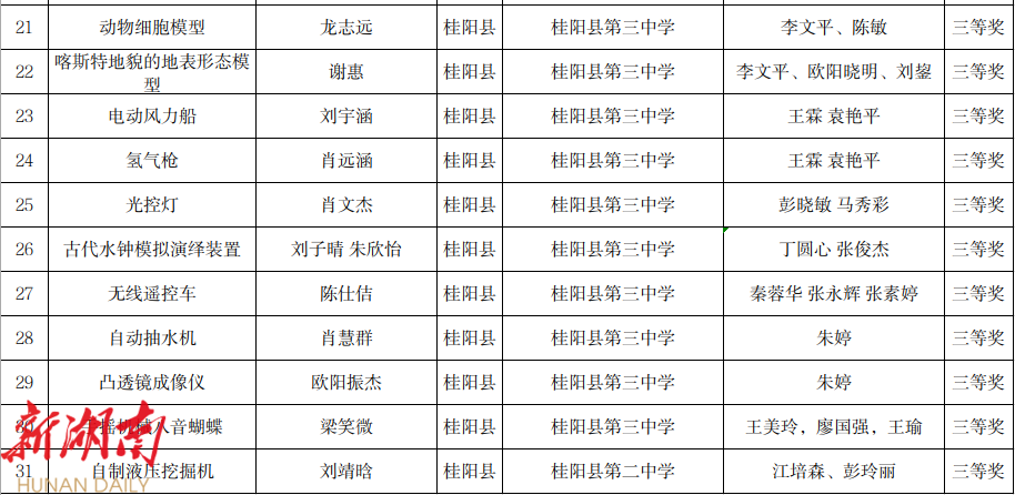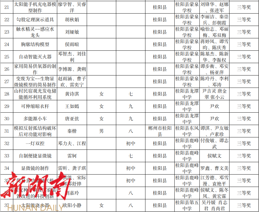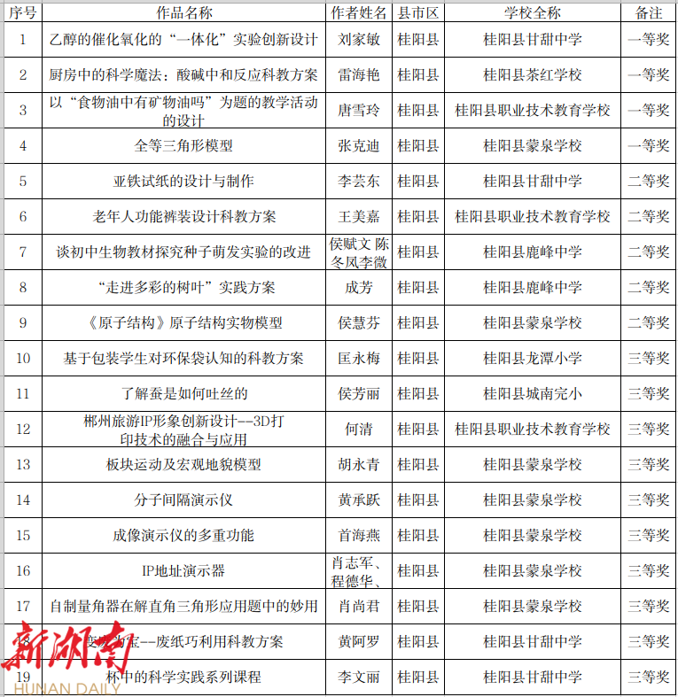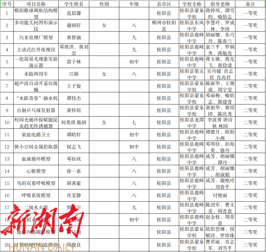 3. 第20届桂阳县青少年科技创新大赛科技教师作品获奖名单(科技方案)