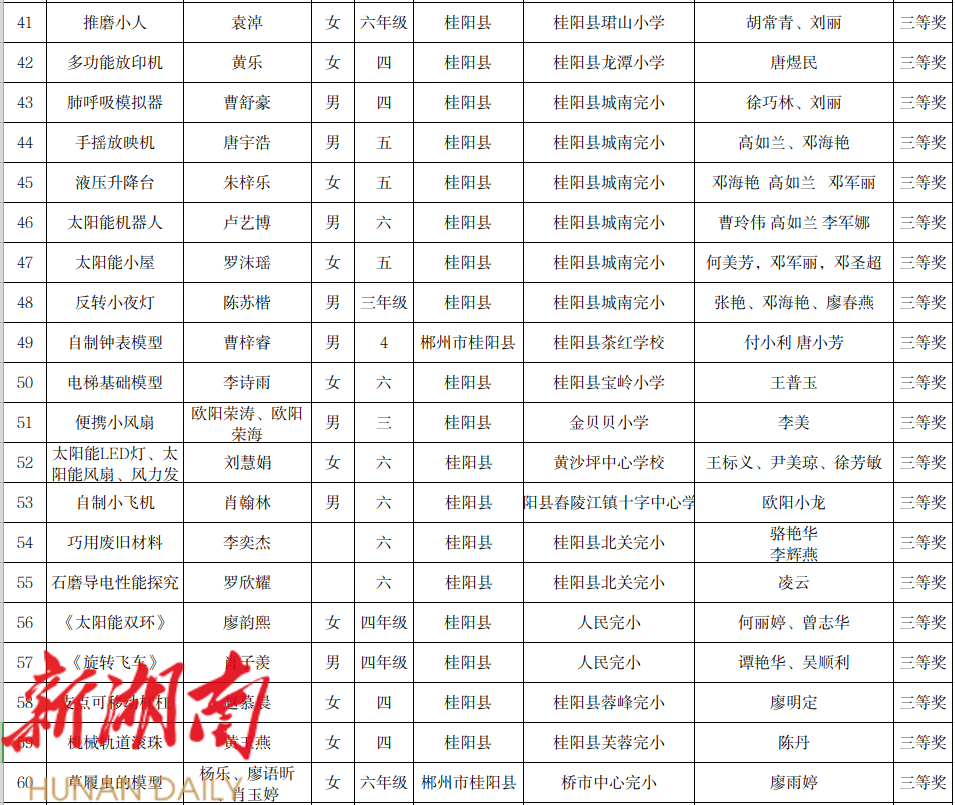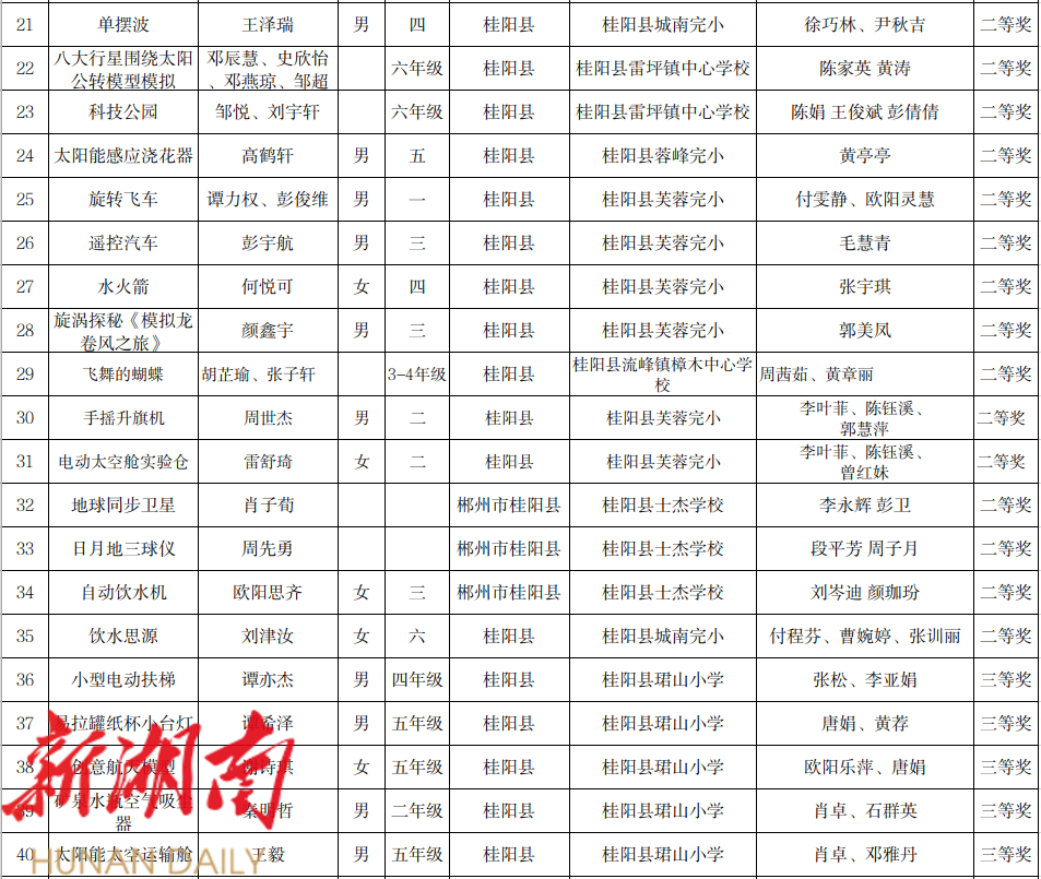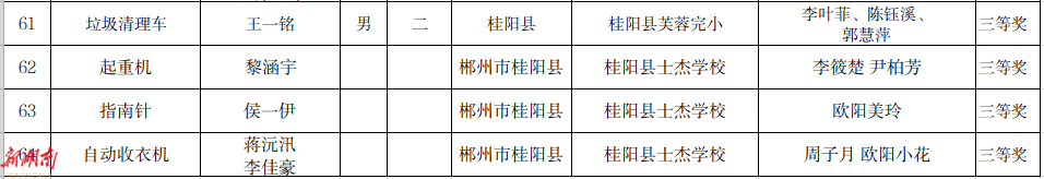 7. 第20届桂阳县青少年科技创新大赛学生创新成果获奖名单(小学)科技小制作