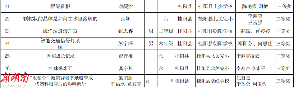 4. 第20届桂阳县青少年科技创新大赛学生创新成果获奖名单(小学)科技小论文