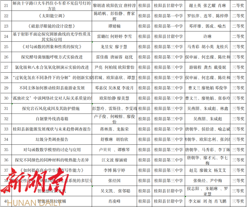 5. 第20届桂阳县青少年科技创新大赛学生创新成果获奖名单(初中)科技小论文