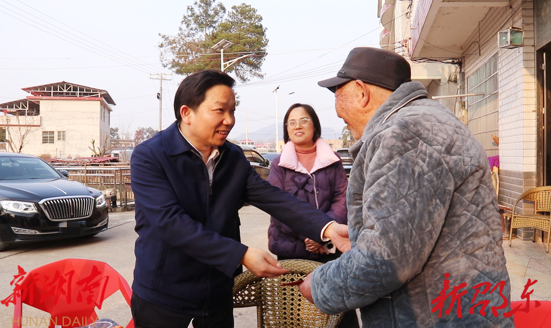 新邵东客户端1月22日讯(记者 刘意忠) 连日来,邵东市委书记李国军开展春节前走访,慰问困难群众、党员,离退休老干部,专家人才,重点企业及重要客商和一线值班人员,送上党和政府的关怀,并致以新春祝福。他强调,要深入践行以人民为中心的发展思想,要带着感情、带着责任,时刻关心百姓安危冷暖,用心用情用力做好春节“四保”工作,确保全市人民过上一个平安欢乐祥和的春节。