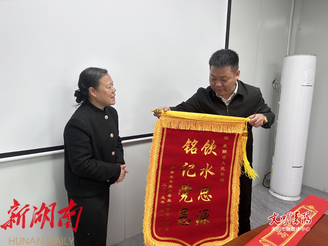 1月22日,在黄市镇竹海村凉亭水厂正式通水仪式上,当地支柱产业之一的水木芙蓉茶业有限公司向耒阳市水利局赠送了一面“饮水思源,铭记党恩”的锦旗,以感谢他们为水厂通水付出的辛劳。