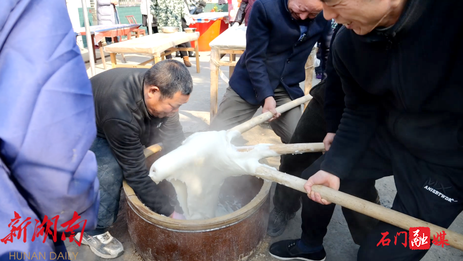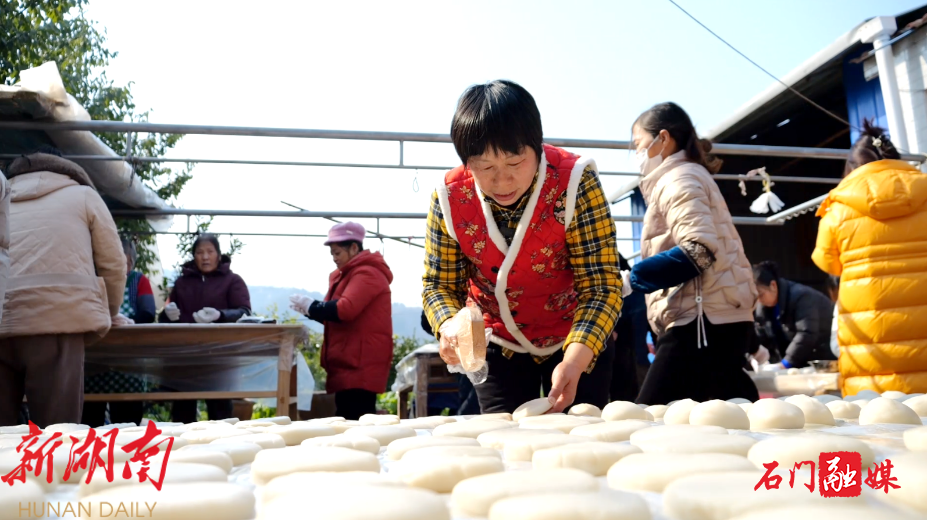 湖南日报·新湖南客户端1月23日讯(记者 易姣妃 牟宇飞)作为年味的“象征”,这几天年粑粑已经迎来了制作、销售的高峰期。在蒙泉镇夏家巷社区董明群的家里,十几位乡邻从四面八方赶来,趁着晴好天气,一起帮她家制作这一传统美食。