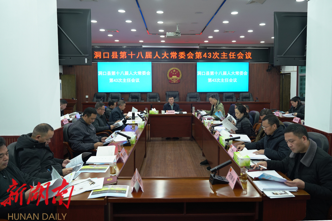 新洞口客户端1月24日讯(记者:肖皓静 通讯员:曾盛) 1月23日,县人大常委会主任欧阳佑春主持召开县十八届人大常委会第43次主任会议。县人大常委会领导戴伟建、肖谋解、向书宏、向传喜出席会议,副县长杨国荣列席会议。