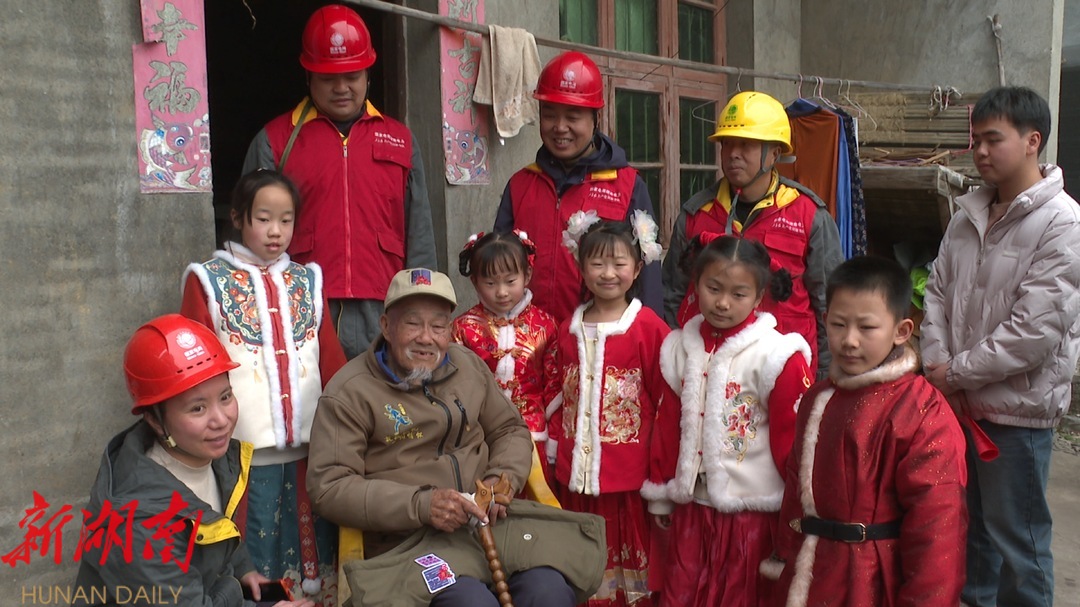 新洞口客户端1月24日讯(记者:欧阳沐娟 胡海鹏 通讯员:魏艳) 1月23日,新春佳节来临之际,国网供电公司组织相关工作人员和大学生志愿者以及小朋友到黄桥镇安乐村走访慰问百岁抗战老兵周光元,向他致以新春的祝福和节日的问候。