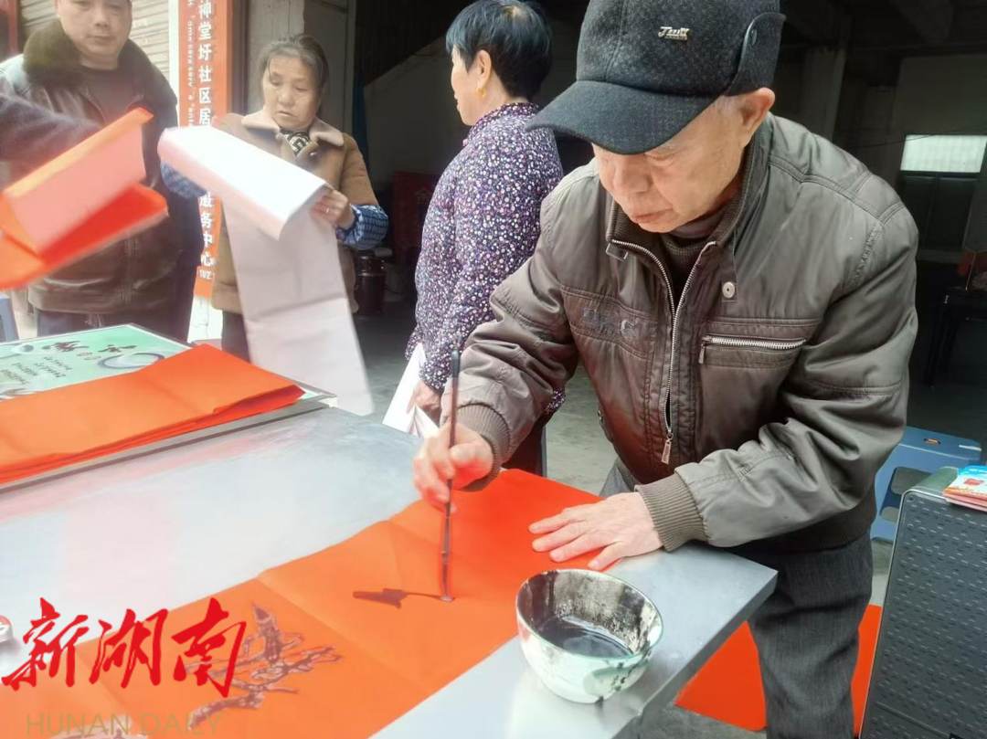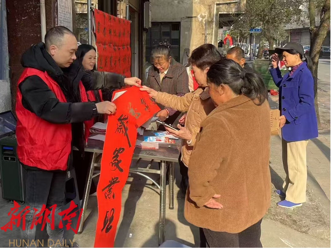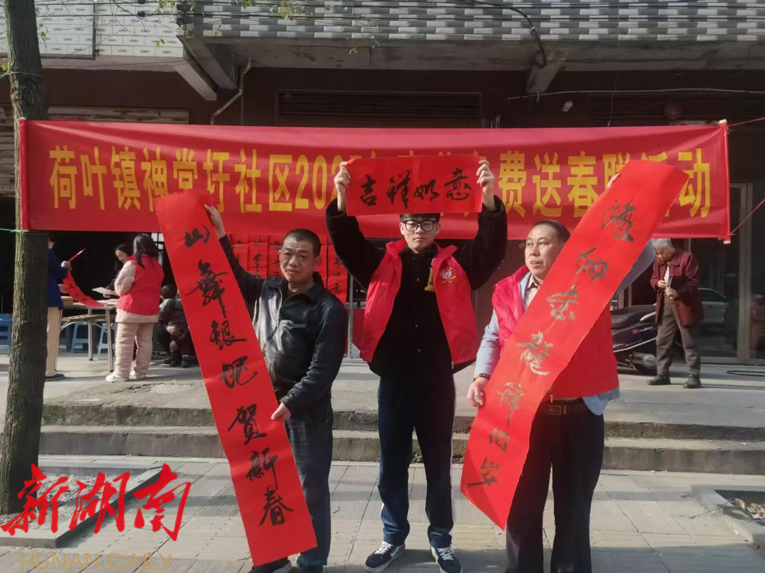 荷叶镇新时代文明实践所连续两年联合神堂圩社区居委会一同开展赠送春联活动,赢得了群众的一致好评。拿到对联的大妈欧阳美云高兴地说:“这样的活动既暖心又实用,让我们感受到了浓浓的年味和社区的关怀。”。神堂圩居委会主任谭超表示:“我们希望通过赠送春联的形式,进一步激发居民参与文化活动的热情,增强文化自信,让更多人理解并传承中华民族优秀的传统文化,以此推动乡村振兴文化建设。”