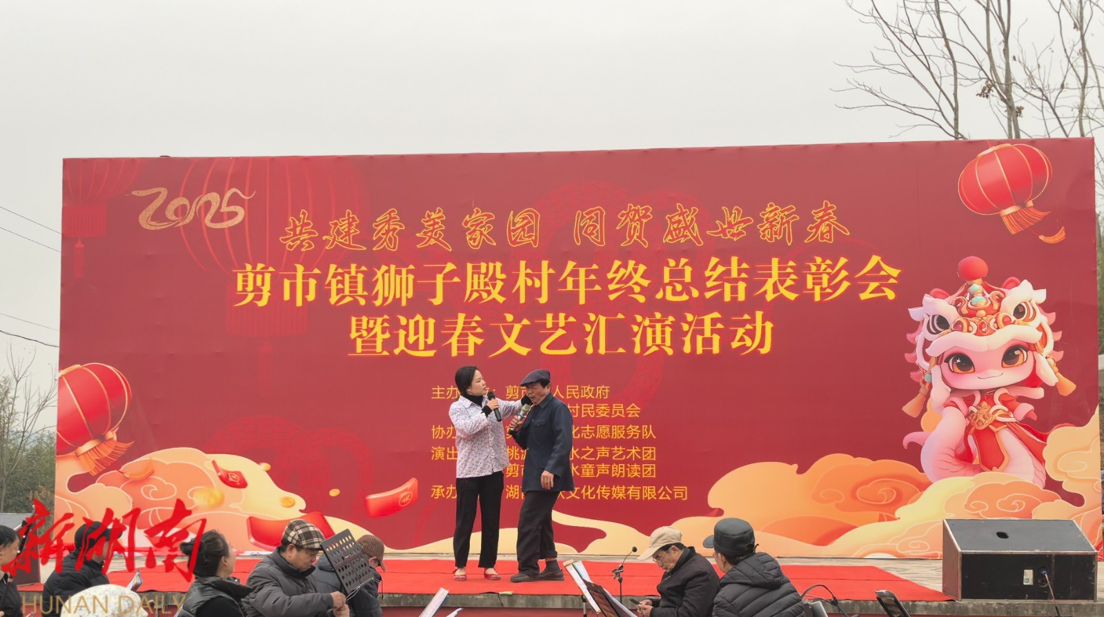 活动最后,在2025年“迎新春 送春联”活动中本次文艺汇演画上了圆满的句号。整场“村晚”精彩纷呈,表演各具匠心,不仅生动展现了剪市镇狮子殿村的精神面貌,也为即将到来的新春增添了喜庆的氛围,促进了干群之间的关系,增强了群众的幸福感和获得感。
