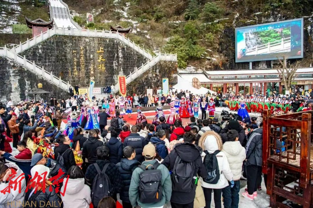 1月24日(腊月二十五),五谷丰登土家赶年。组织入境游客体验土家过赶年、同吃团年宴等,感受张家界土家族不一样的年味、节味。 天门山: