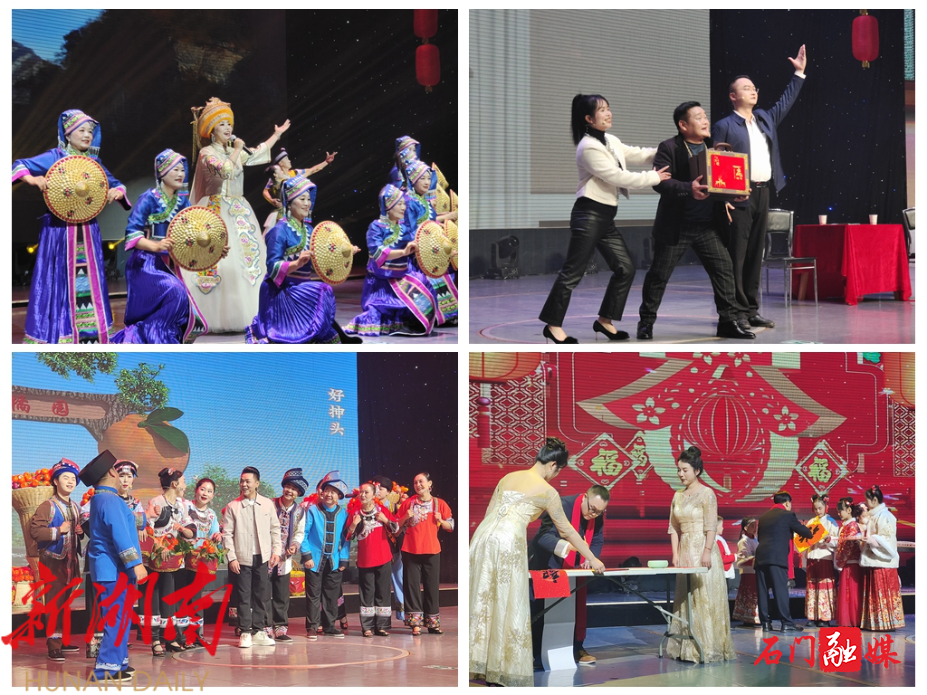 晚会中优美的舞蹈舞出了石门人的新年新气象,高亢的歌声唱出了石门人的幸福新生活。17个精彩节目轮番上演,一次次把晚会气氛推向高潮,生动展现了石门本土的特色产业以及石门人民积极向上的精神风貌。