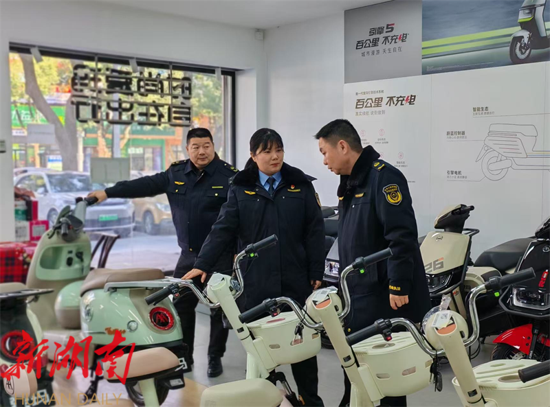 湖南日报·新湖南客户端1月24日讯 (通讯员 李佳 陈瑛姿) 近日,岳阳县市场监督管理局组织开展节前电动自行车全链条专项检查。进一步规范电动自行车销售市场秩序,推进电动车新强制性标准的贯彻落实,保障广大市民的出行安全。